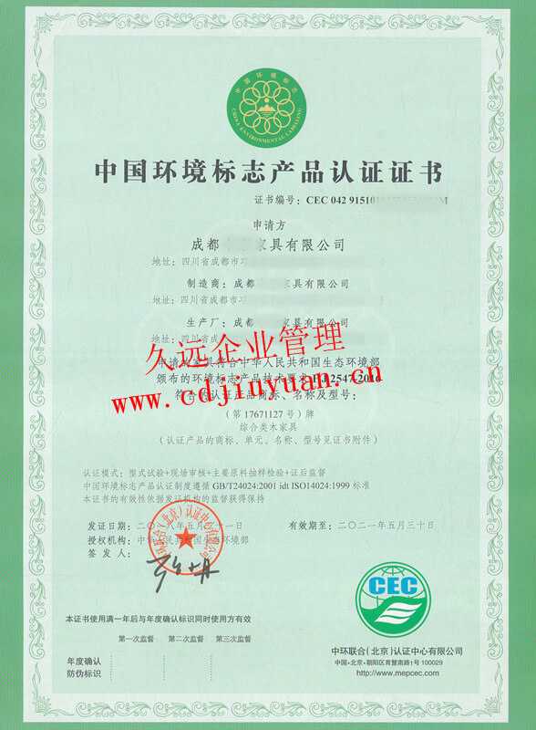 中國環(huán)境標(biāo)志產(chǎn)品認(rèn)證證書(十環(huán)認(rèn)證)