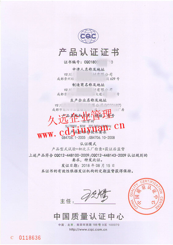CQC標(biāo)志產(chǎn)品認(rèn)證證書